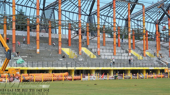 “現(xiàn)在我們抓緊搶工期,每天工人增加到200多人,實(shí)行兩班倒,確保工程按時(shí)完工。”三臺縣體育場提升改造項(xiàng)目生產(chǎn)經(jīng)理張彰向記者透露,改造升級后的體育館,計(jì)劃在“川超”綿陽隊(duì)首場主場比賽時(shí)驚艷亮相 。