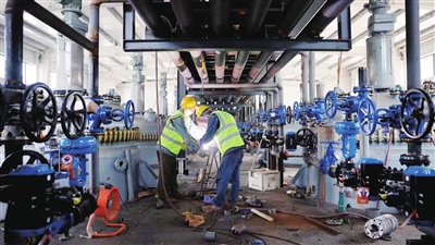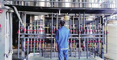 迪澳藥業(yè)工人正在查看設(shè)備運(yùn)轉(zhuǎn)情況
