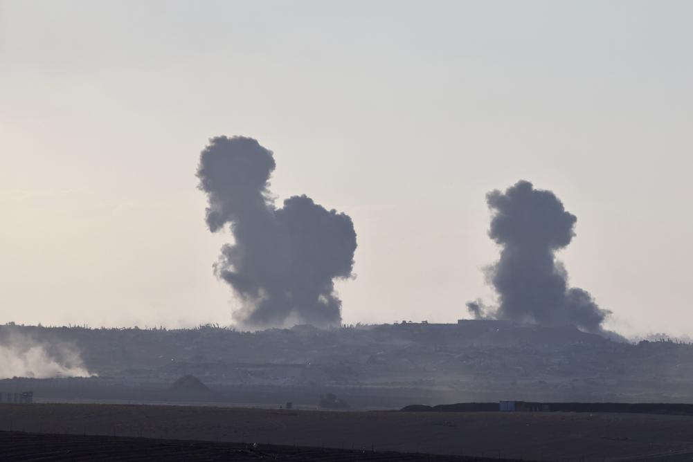 這是9月16日從加沙邊境以色列一側(cè)拍攝的加沙地帶遭襲后升起濃煙。新華社發(fā)(賈馬爾·阿瓦德攝)