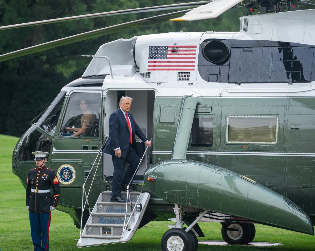 9月16日,在美國首都華盛頓,美國總統(tǒng)特朗普登機離開白宮,啟程對英國進行國事訪問。新華社記者胡友松攝