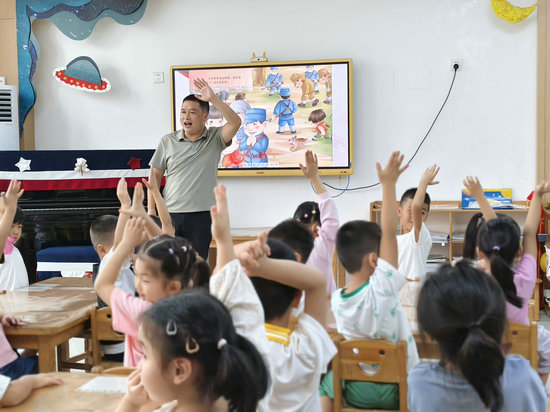 活動中,黨支部書記龔蓉聲情并茂地講述《哪年的九一八》故事,帶領孩子們初步感知歷史,通過展示老照片、模仿防空警報聲等趣味形式,讓孩子們輕輕觸摸那段歲月的印記;黨支部副書記王太平則為孩子帶來《雞毛信》的故事,用生動語言展現(xiàn)海娃的機智勇敢,孩子們屏息凝神沉浸其中,悄然理解了“責任”與“勇敢”的含義;黨員干部何楠分享經典紅色故事《王二小》,當講到王二小為掩護鄉(xiāng)親英勇犧牲時,孩子們眼中滿是崇敬與惋惜,教師適時引導,讓孩子們懂得如今的幸福生活來之不易,要珍惜和平、感恩先烈。