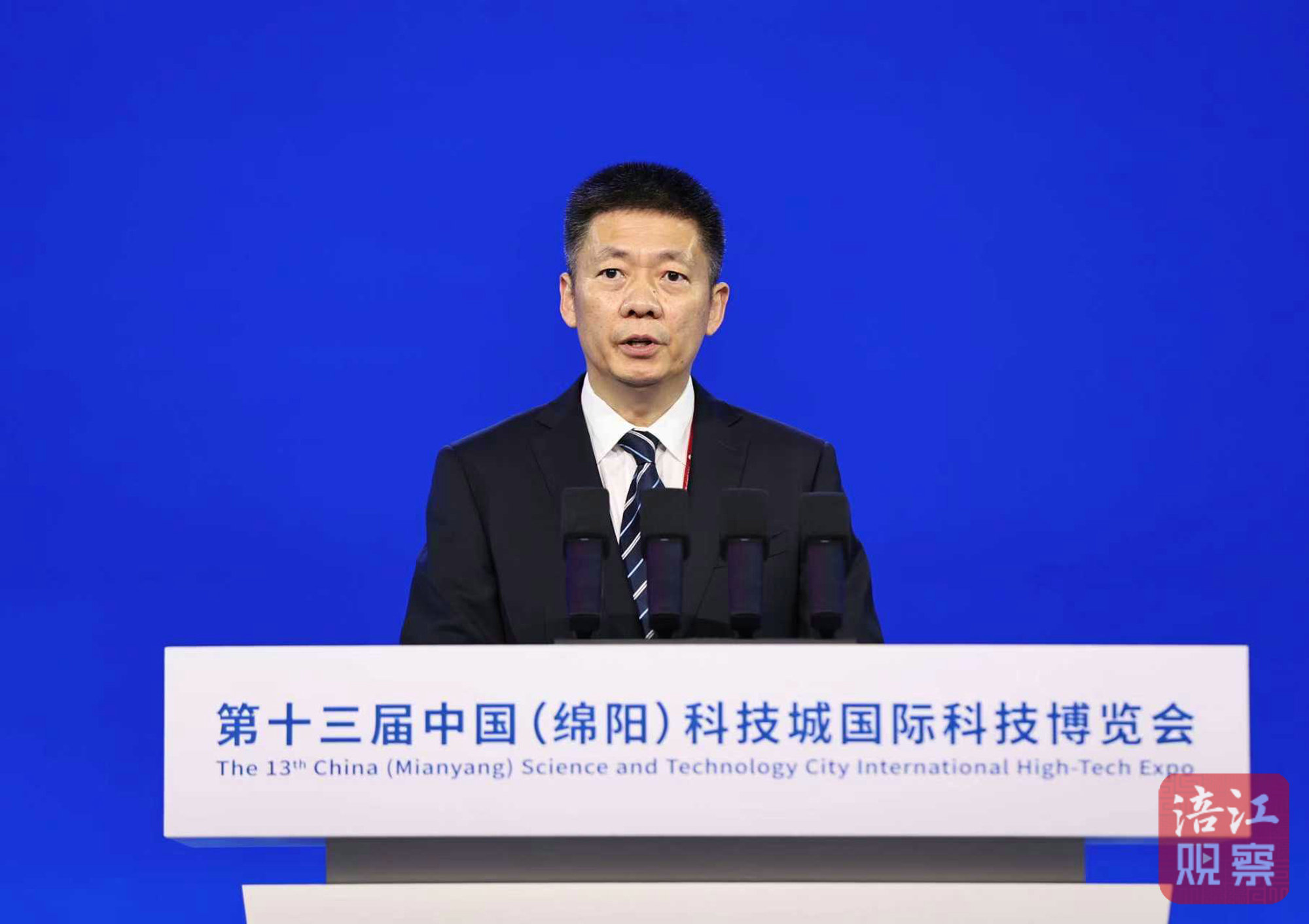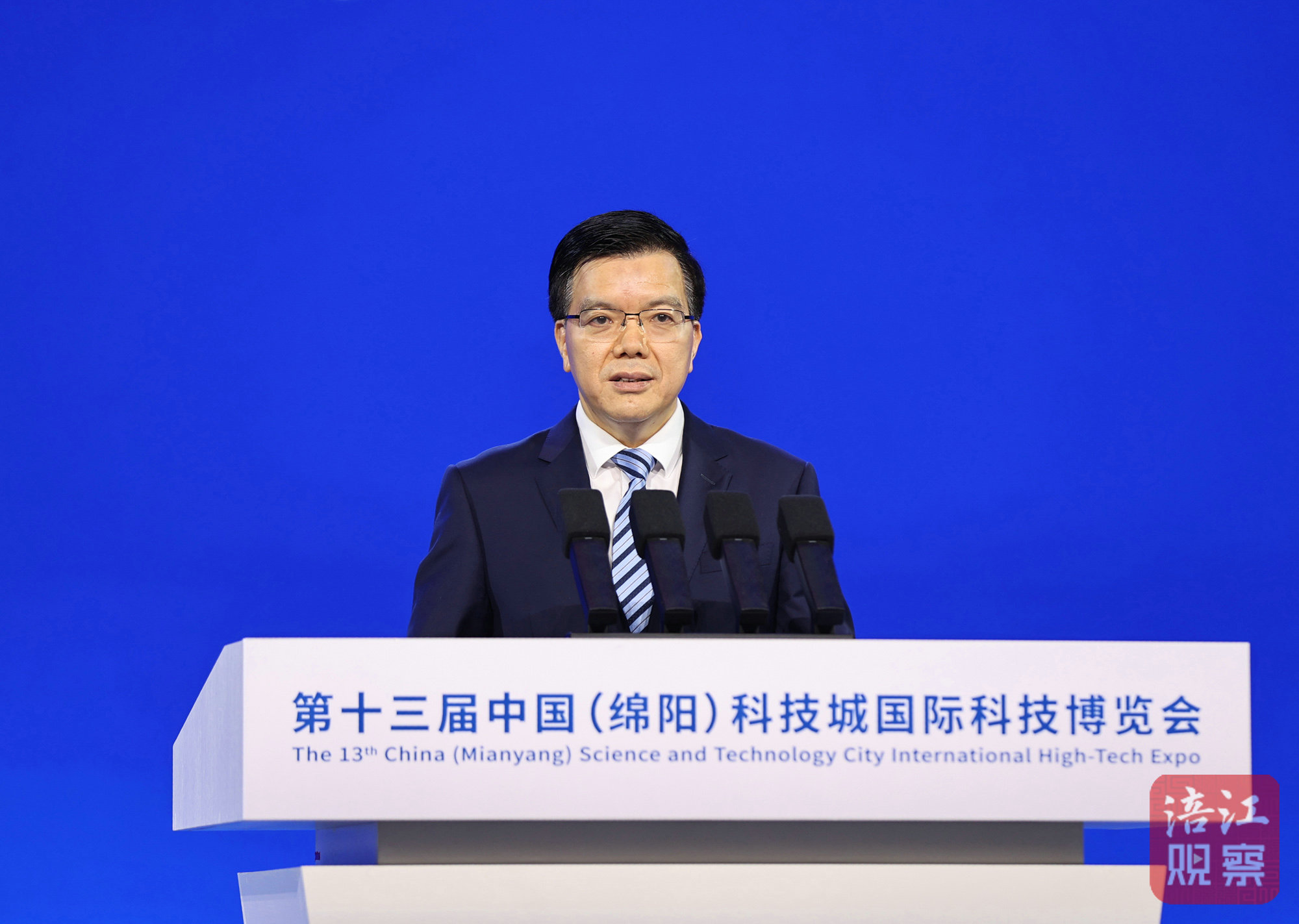 陳書平在致辭中代表省政府對本屆科博會的開幕表示祝賀。他說,四川是經(jīng)濟(jì)大省、科教大省,在全國創(chuàng)新版圖中具有獨(dú)特地位和作用。省委、省政府牢記習(xí)近平總書記囑托,堅持創(chuàng)新在四川現(xiàn)代化建設(shè)全局中的核心地位,強(qiáng)化高端創(chuàng)新資源集聚,加強(qiáng)原創(chuàng)性引領(lǐng)性科技攻關(guān),推動科技創(chuàng)新和產(chǎn)業(yè)創(chuàng)新深度融合,創(chuàng)新驅(qū)動發(fā)展態(tài)勢強(qiáng)勁。綿陽科技實力雄厚,是中國唯一的科技城。植根于這片創(chuàng)新創(chuàng)造的沃土,科博會持續(xù)發(fā)展壯大,不僅是國內(nèi)集中展示前沿科技成果的重要窗口,也是國際科技交流合作的重要平臺,更是區(qū)域創(chuàng)新發(fā)展的重要引擎。希望各位嘉賓能在本屆科博會上發(fā)掘更多合作新機(jī)遇、收獲更多新成果;期待大家借助科博會等合作載體融入四川創(chuàng)新網(wǎng)絡(luò),圍繞科技創(chuàng)新和產(chǎn)業(yè)創(chuàng)新,共同建設(shè)高能級創(chuàng)新平臺,協(xié)同開展重大科技攻關(guān),增強(qiáng)高質(zhì)量科技供給;我們將強(qiáng)化中試驗證、檢驗檢測、成果交易、科技金融等服務(wù)保障,有組織、成體系、全鏈條推動科技成果轉(zhuǎn)化和產(chǎn)業(yè)化。