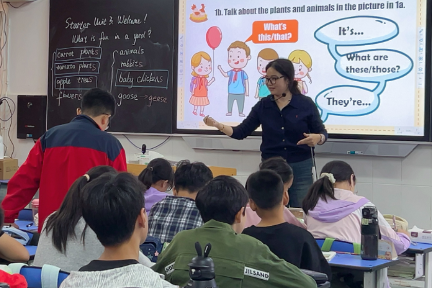 文雨薇老師注重語言的實(shí)際運(yùn)用,通過創(chuàng)設(shè)真實(shí)情境引導(dǎo)學(xué)生理解和運(yùn)用新知。文老師的課堂以“任務(wù)驅(qū)動”為主線,設(shè)計(jì)了豐富多彩的教學(xué)活動,引導(dǎo)學(xué)生聽音猜動物、看圖猜植物,迅速激發(fā)了學(xué)生的興趣。設(shè)計(jì)了角色扮演活動,課堂互動性十足。在練習(xí)環(huán)節(jié),她采用了游戲化的教學(xué)方式,如數(shù)字游戲、快速搶答等,使學(xué)生在輕松愉快的氛圍中掌握了如何用英語詢問和描述動植物的數(shù)量。