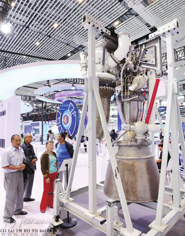 9月28日,在第十三屆中國(guó)(綿陽(yáng))科博會(huì)上展出的液氧甲烷火箭發(fā)動(dòng)機(jī)。
