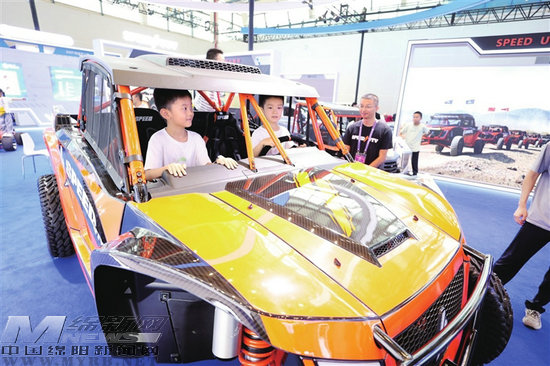 9月28日,在第十三屆中國(guó)(綿陽(yáng))科博會(huì)上,小觀眾體驗(yàn)全地形越野車。