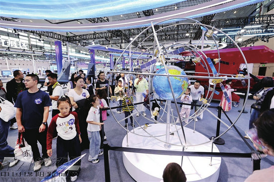 9月28日,在第十三屆中國(guó)(綿陽(yáng))科博會(huì)“南天門計(jì)劃”主題展區(qū),觀眾沉浸式體驗(yàn)科幻裝備的魅力。