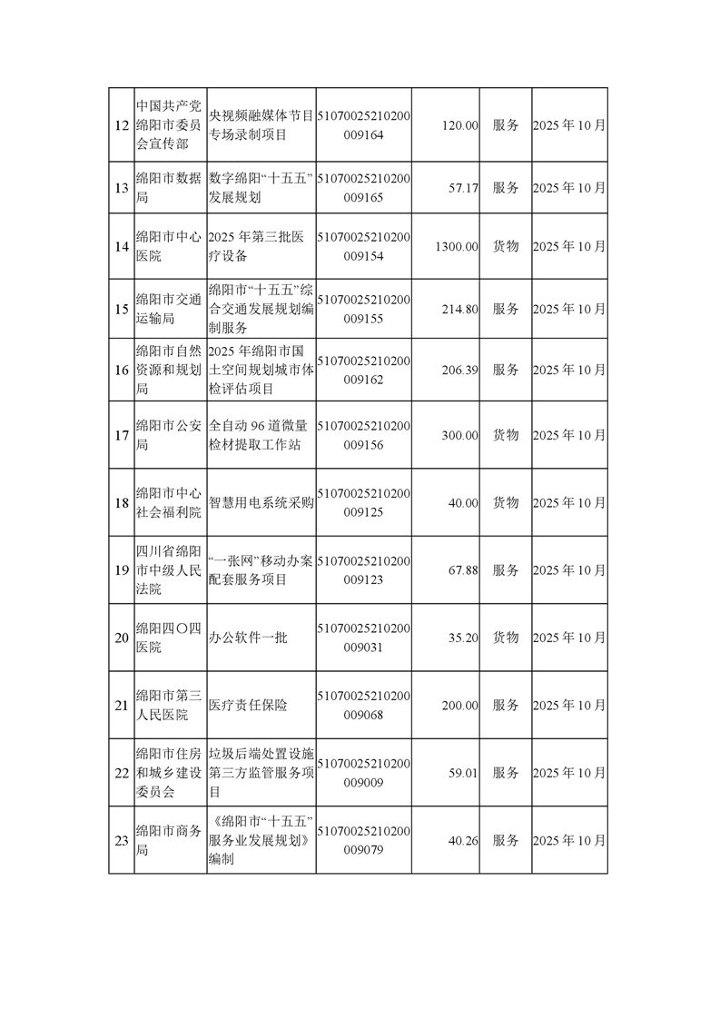 38個政府采購項目的“機會清單”出爐?。?025年第十一批)綿陽市市本級政府采購項目信息動態(tài)(2025年第十一波)