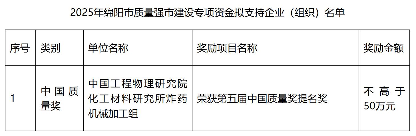 附件:2025年綿陽市質(zhì)量強(qiáng)市建設(shè)專項(xiàng)資金擬支持企業(yè)(組織)名單