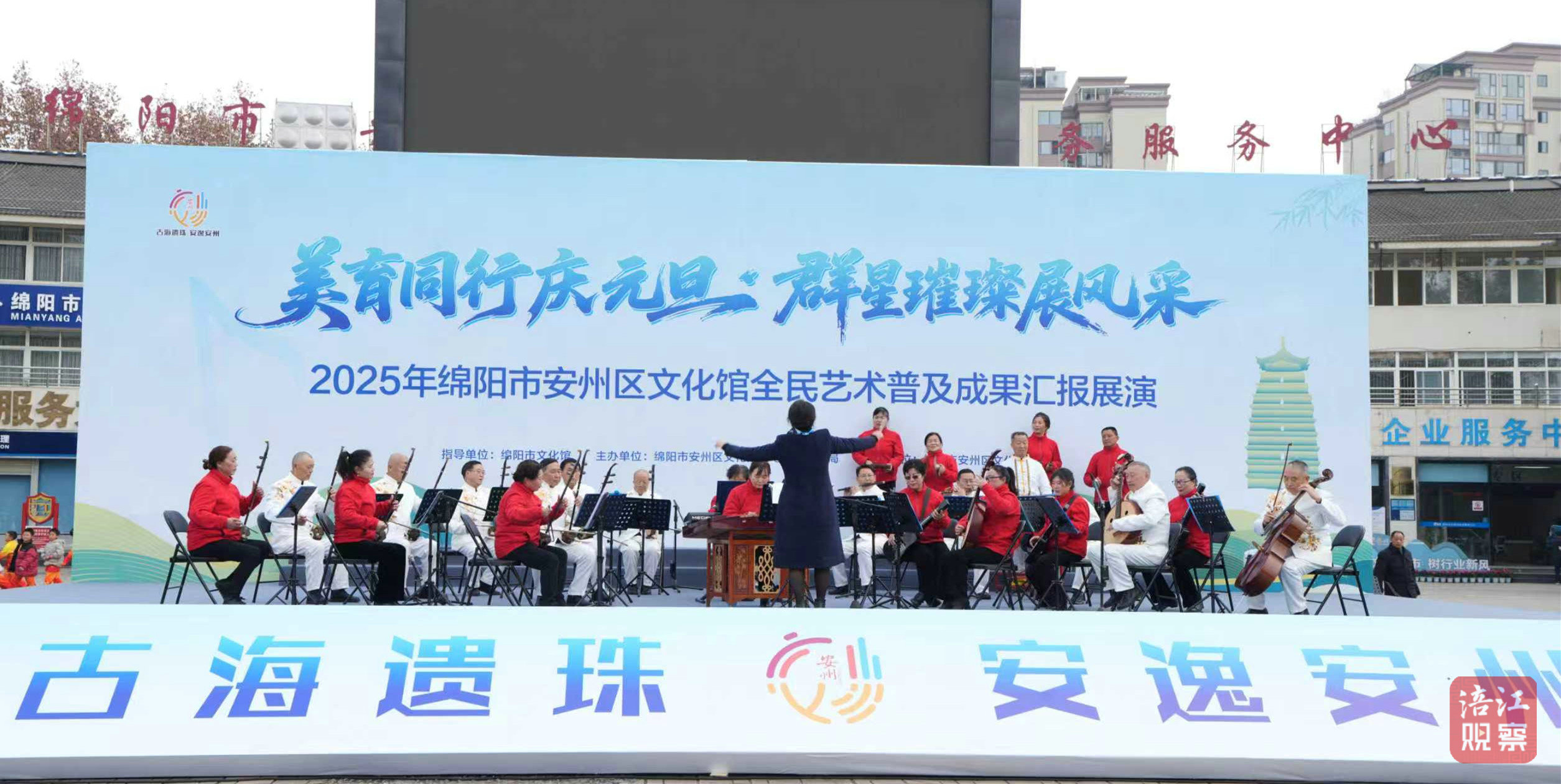 在安州區(qū)文化廣場(chǎng),“美育同行慶元旦·群星璀璨展風(fēng)采”全民藝術(shù)普及成果匯報(bào)展演舉行。這場(chǎng)集藝術(shù)展演、非遺展示與書(shū)畫展覽于一體的文化盛宴,以多元藝術(shù)形式集中呈現(xiàn)全區(qū)全民美育工作成效,為市民帶來(lái)一場(chǎng)兼具觀賞性與文化性的視聽(tīng)享受。