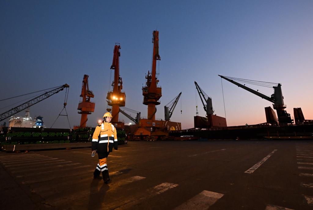 “元旦這幾天船期排得滿滿當(dāng)當(dāng),咱們得搶抓時(shí)間,穩(wěn)穩(wěn)拿下新年‘第一仗’!”47歲的孟慶艷話音剛落,呼出的白氣剛一出口,便被貨場(chǎng)凜冽的海風(fēng)瞬間吹散。