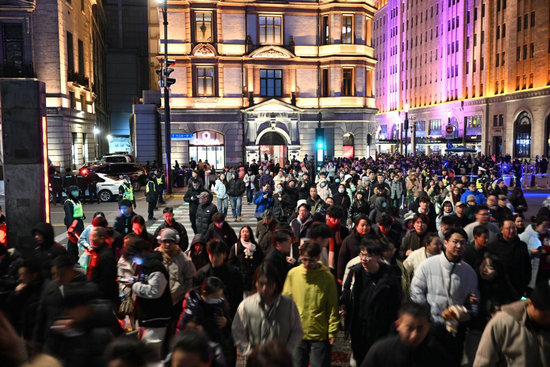 2025年12月31日晚,上海外灘區(qū)域迎來(lái)跨年迎新的大客流。新華社發(fā)