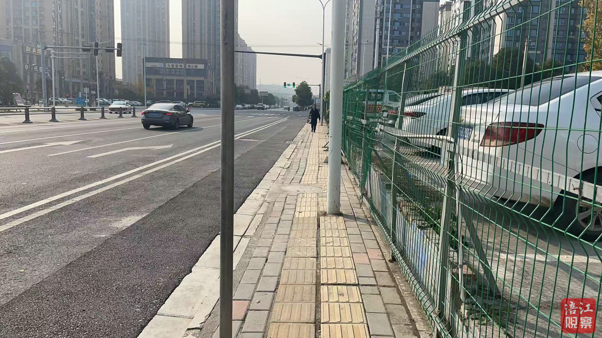 人行道最窄不足1米,路人直呼“太擠了”