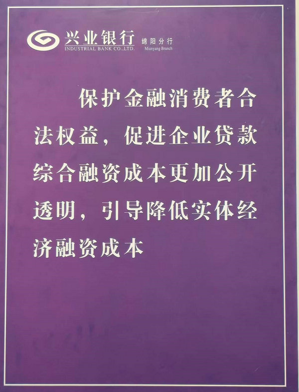該筆貸款的發(fā)放,是興業(yè)銀行綿陽分行認(rèn)真落實中國人民銀行綿陽市分行關(guān)于明示企業(yè)貸款綜合融資成本試點工作的相關(guān)要求、推動銀行從“透明服務(wù)”向“增值服務(wù)”升級的舉措。綿陽分行圍繞“一張明白紙,理清成本明細(xì)賬”的主題,將明示工作作為貸款發(fā)放的必要流程,以《企業(yè)貸款綜合融資成本清單》為抓手,推動融資成本透明化、規(guī)范化,精準(zhǔn)滴灌企業(yè)發(fā)展。