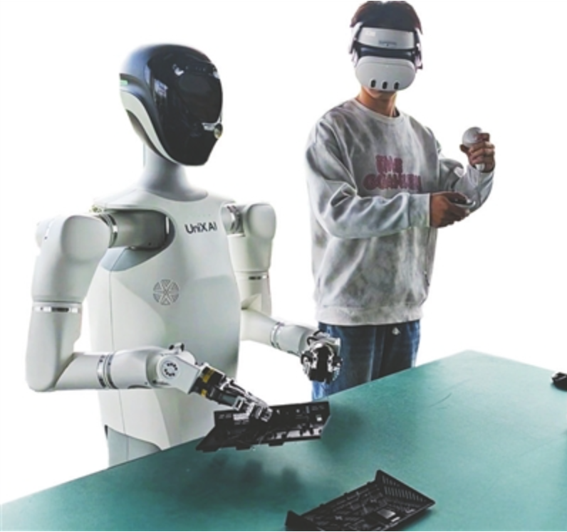 “注意看儀表參數(shù),轉(zhuǎn)鼓轉(zhuǎn)速再微調(diào)一下!”近日,在四川省具身智能機(jī)器人訓(xùn)練場三樓,數(shù)據(jù)采集員正通過遙操設(shè)備,指導(dǎo)一臺人形機(jī)器人反復(fù)練習(xí)柔性穿線動(dòng)作。抓取、穿引、放置,每一個(gè)細(xì)微動(dòng)作都被攝像頭精準(zhǔn)捕捉,源源不斷地“喂”給訓(xùn)練模型。