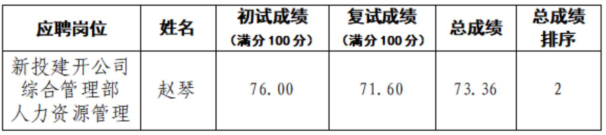 《綿陽科技城新區(qū)投資控股(集團(tuán))有限公司(含所屬公司)人力資源需求外部公開招聘暨市場化選聘應(yīng)聘人員復(fù)試成績公示(2025年第三批次·第二部分)》已于2025年12月22日掛網(wǎng)公告,在背景調(diào)查環(huán)節(jié),新投建開公司綜合管理部人力資源管理崗位梁路沙自愿放棄背景調(diào)查。根據(jù)用人單位意見,結(jié)合該崗位其他應(yīng)聘者學(xué)歷及資格審核、初試成績、復(fù)試成績等綜合評估,現(xiàn)對該崗位擬順位遞補(bǔ)背景調(diào)查的應(yīng)聘者趙琴同志予以公示。
