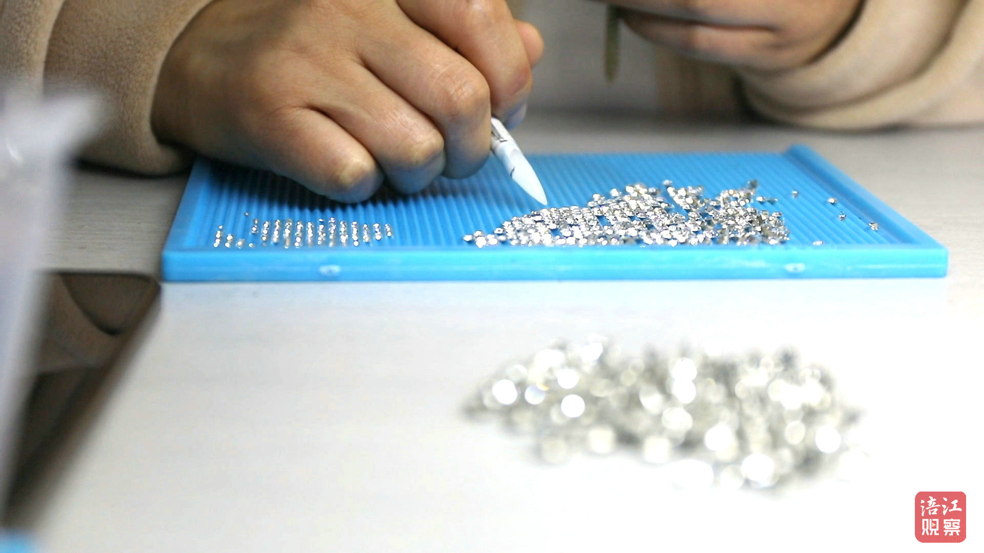 記者在社區(qū)工廠看到,生產(chǎn)線上的寶媽們手持鑷子鑲嵌鉆石、用電烙鐵焊接零件,計(jì)件制的工作模式讓她們得以兼顧家庭與收入。“鉆石媽媽”劉露放下手中的活兒對(duì)記者說(shuō):“離家近、時(shí)間靈活,一個(gè)月能掙近3000元,再也不用為照顧孩子和賺錢(qián)發(fā)愁了。”