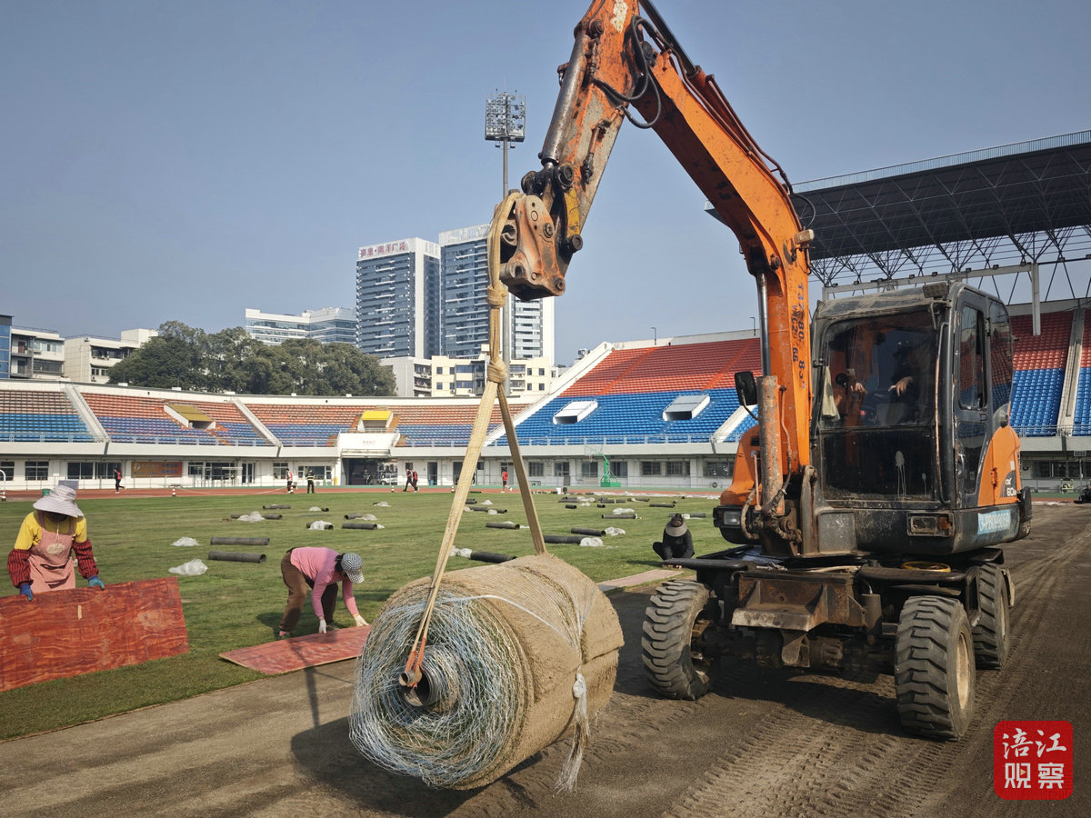記者在施工現(xiàn)場(chǎng)看到,從草皮鋪設(shè)到看臺(tái)地板刷漆,再到主客隊(duì)休息室的全面翻新,各項(xiàng)改造工作有條不紊。在球場(chǎng)草皮鋪設(shè)現(xiàn)場(chǎng),機(jī)械與人工緊密配合,協(xié)同作業(yè)。施工人員分工明確、配合默契,有的負(fù)責(zé)搬運(yùn),有的鋪設(shè)。為確保每一片草皮都能與地面緊密貼合,工人們?nèi)褙炞?,不放過(guò)任何一個(gè)細(xì)節(jié)。