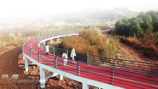 與鄉(xiāng)村綠道同步推進(jìn)的,還有仙海環(huán)湖親水綠道。這條4.5米寬的生態(tài)廊道蜿蜒于湖光山色間,串聯(lián)起好運(yùn)碼頭、喜來登酒店等核心地標(biāo),配套建設(shè)的觀景平臺、親水棧道、休憩驛站,構(gòu)建起“步行+騎行+觀光”的慢行網(wǎng)絡(luò),成為市民游客青睞的“天然氧吧”休閑勝地。目前,鄉(xiāng)村綠道與環(huán)湖親水綠道已形成“大環(huán)帶小環(huán)”的空間格局:鄉(xiāng)村綠道深入鄉(xiāng)村腹地,激活沿線農(nóng)旅資源;環(huán)湖親水綠道環(huán)繞核心景區(qū),承載戶外運(yùn)動與文旅融合功能,共同繪就仙海“推窗見綠、漫步親水”的生態(tài)畫卷。