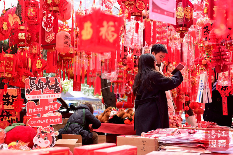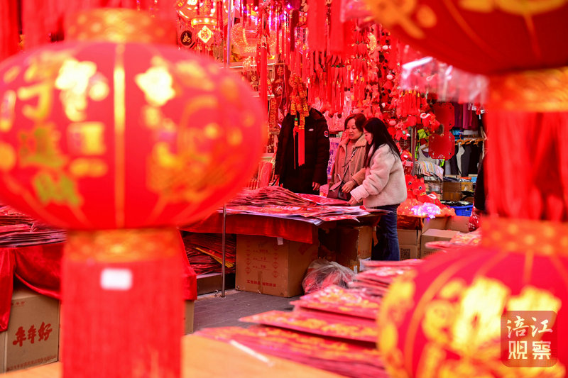 1月17日,恰逢周末,記者在綿陽城區(qū)小商品批發(fā)市場和大型商超看到,隨著農(nóng)歷馬年的腳步越來越近,寓意吉祥的福字、火紅的燈籠、喜慶的春聯(lián),還有造型各異的“馬元素”擺件等各類新年飾品琳瑯滿目,喜氣又好看,吸引了不少市民駐足選購。