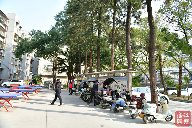 進修校小區(qū)是老舊小區(qū),過去曾存在生活垃圾清理不及時、飛線充電、車輛亂停擠占消防救援通道等問題。如今,寬敞整潔的院壩不僅安裝了智慧停車系統(tǒng),施劃了停車線,設(shè)置了非機動車充電裝置,還有乒乓球臺等健身設(shè)施。
