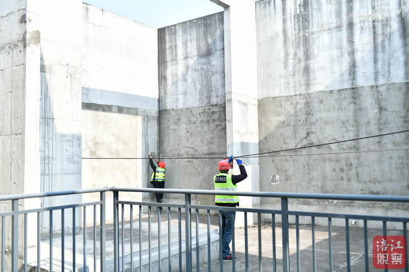 在“金域府·公園里”小區(qū)樓頂,城管執(zhí)法人員正在安裝防侵占鋼繩??h城市管理服務(wù)中心政策法規(guī)股股長黃超介紹,去年下半年以來,通過在7個小區(qū)22個樓棟采取該項措施,有效防止了樓頂違法搭建。