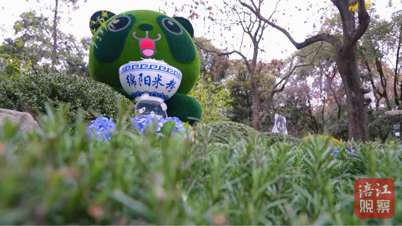 “今天逛人民公園瞅見這個(gè)熊貓景觀,真的好看,它抱著一碗米粉,簡(jiǎn)直就是咱們綿陽(yáng)的標(biāo)志嘛。周圍的繡球花配著綠植,顏色又鮮又亮,拍照特別出片。”游客楊智涵邊拍照“打卡”邊說(shuō)。