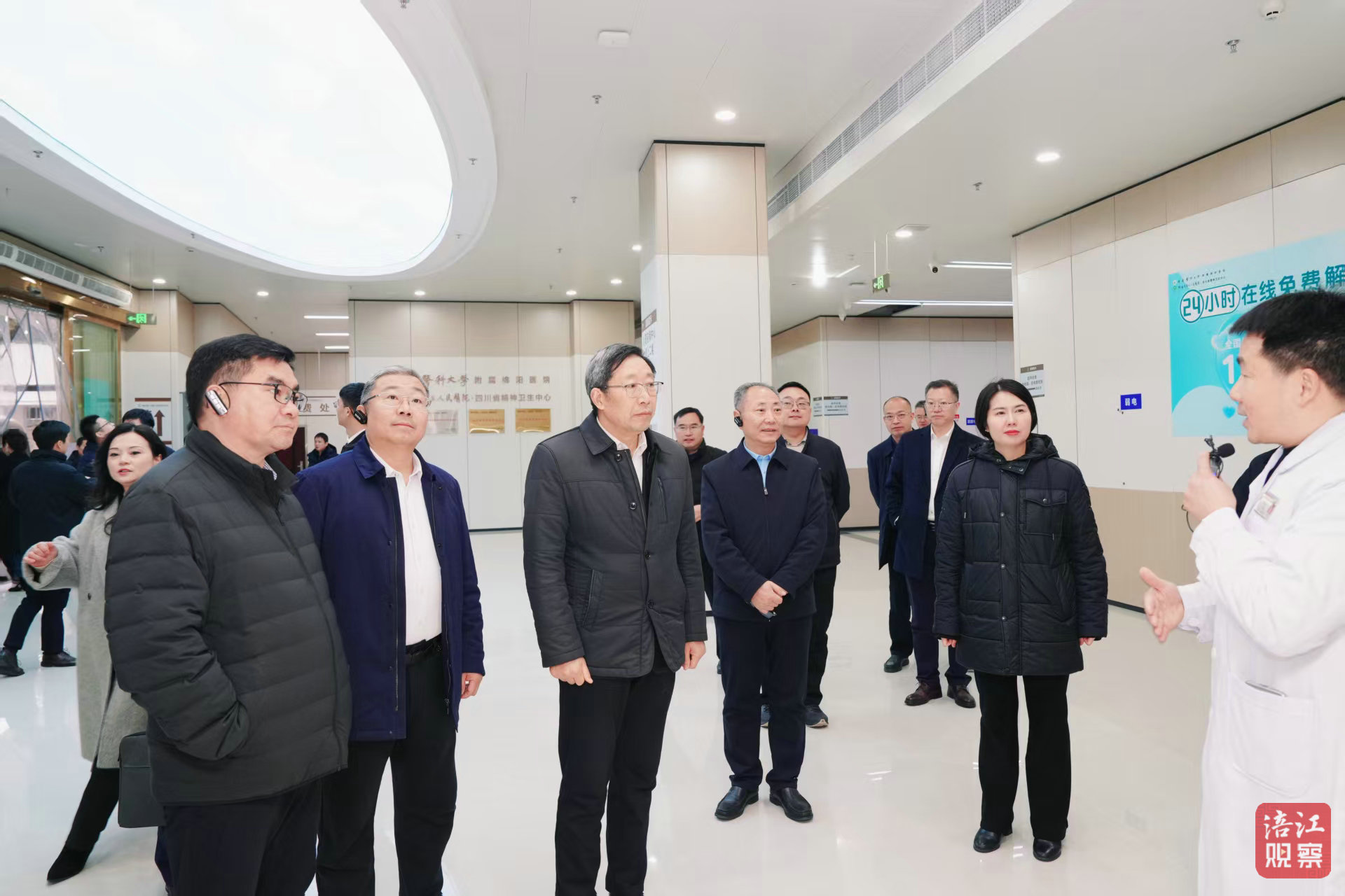 調(diào)研組一行先后走訪門(mén)診大廳、骨科住院樓、精神醫(yī)學(xué)綜合樓等處,詳細(xì)了解醫(yī)院運(yùn)行管理、學(xué)科建設(shè)、科研平臺(tái)及特色專(zhuān)科發(fā)展情況。