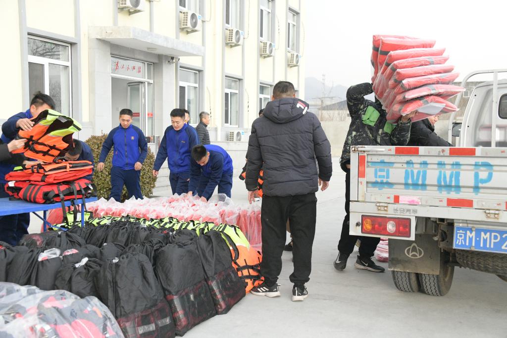 被救援人員向山區(qū)村捐贈(zèng)共計(jì)280件救生衣。新華社發(fā)