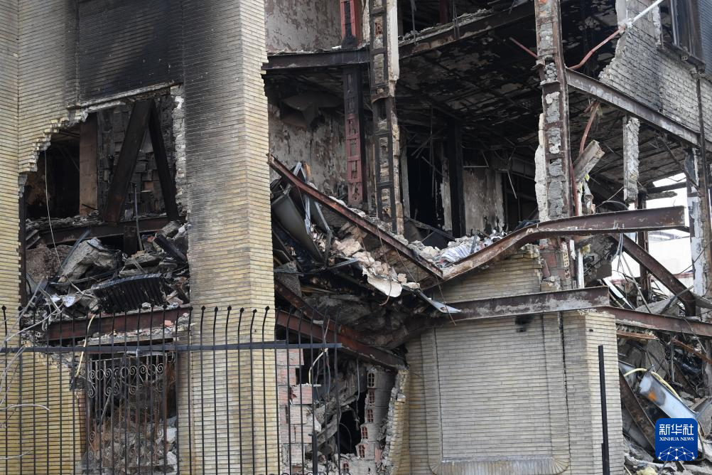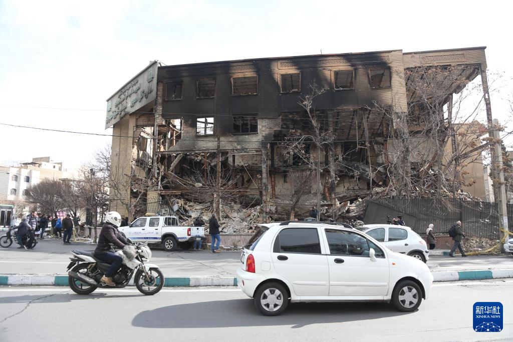 這是1月21日在伊朗首都德黑蘭拍攝的在近期騷亂中受損的一處稅務(wù)局建筑。新華社記者 沙達(dá)提 攝