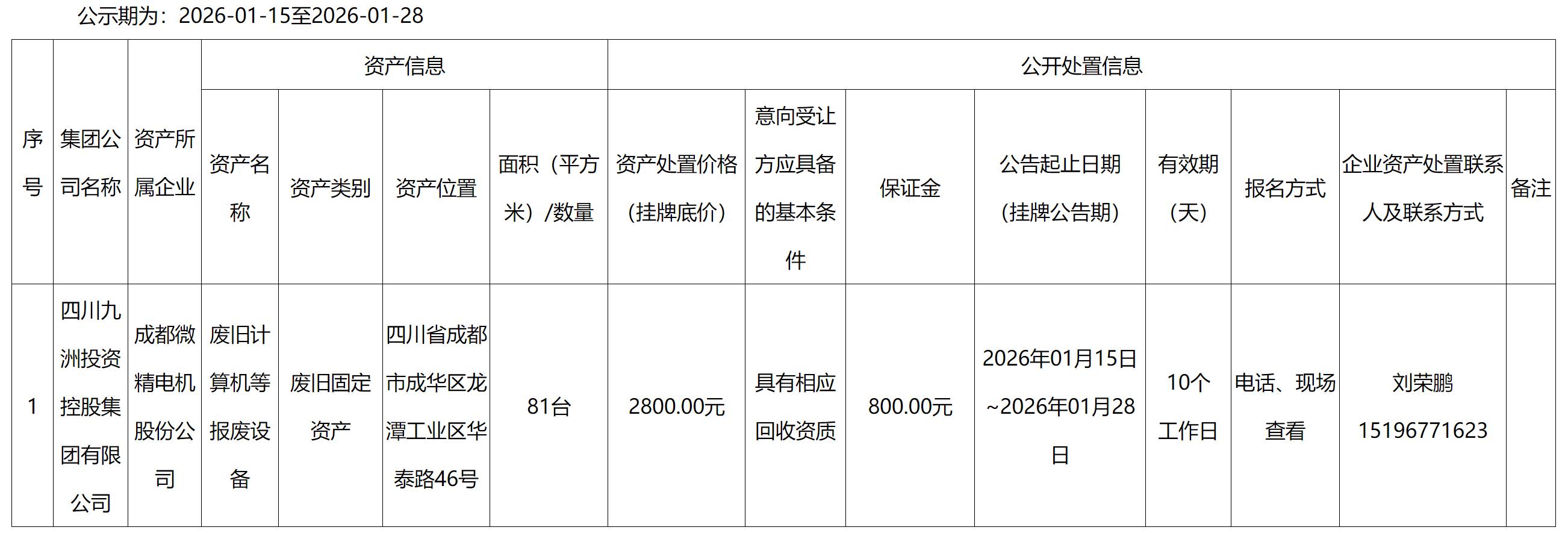 成都微精電機股份公司資產(chǎn)處置公告