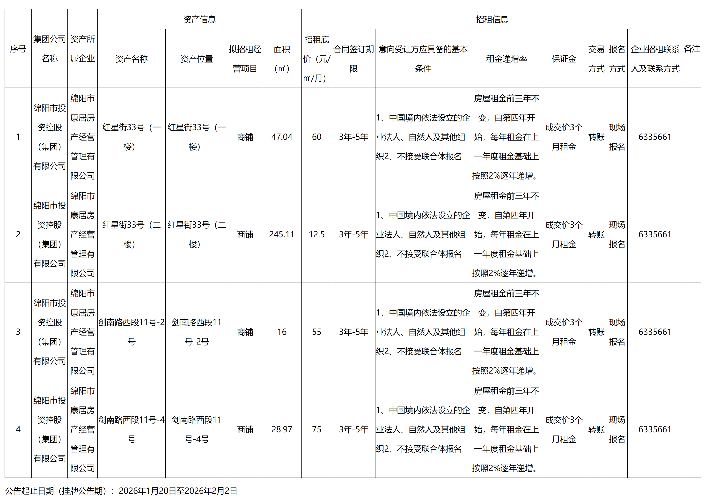 綿陽(yáng)市康居房產(chǎn)經(jīng)營(yíng)管理有限公司資產(chǎn)出租公告