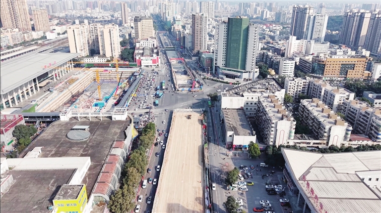 綿陽火車站站前廣場(chǎng)及周邊配套設(shè)施建設(shè)項(xiàng)目施工現(xiàn)場(chǎng)。 記者 李玉佳 攝