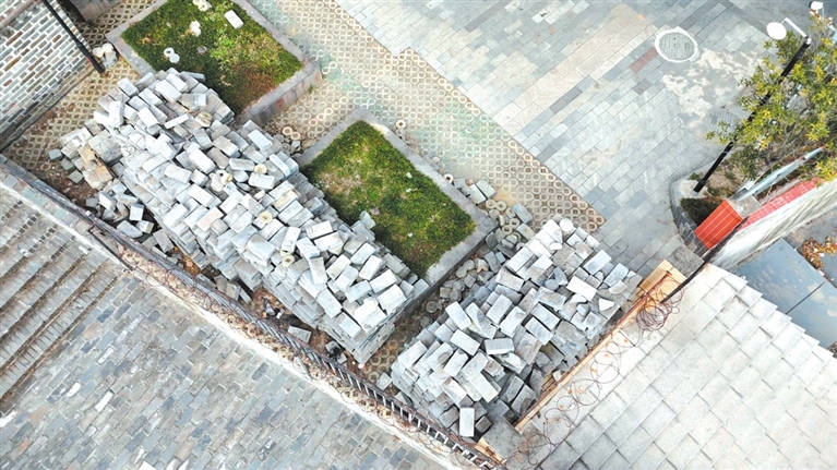 這些廢磚從何而來?據(jù)居民反映,磚塊并非無主之物。小區(qū)旁的南城門墻屬明代遺址,2022年,為阻止人員進(jìn)入尚未開放的遺址區(qū)域,平武縣相關(guān)部門曾在此砌筑了一段長20余米,高3米的擋墻。2023年,考慮到南城門墻的美觀度,該擋墻被整體拆除,拆下來的磚塊便被堆放在小區(qū)綠化帶內(nèi),自此無人問津。