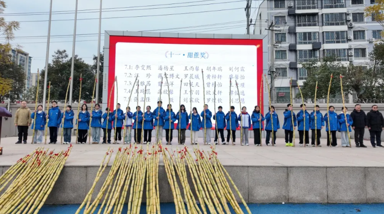 “十一·甜蔗獎(jiǎng)”的頒發(fā)將典禮推向溫馨的高潮。以甘蔗的清甜寓意成長的歷程——先經(jīng)風(fēng)雨錘煉,終得甘甜回響;這也寄托著該校對學(xué)子們“學(xué)習(xí)進(jìn)步節(jié)節(jié)高,生活幸福節(jié)節(jié)甜”的美好祝愿。