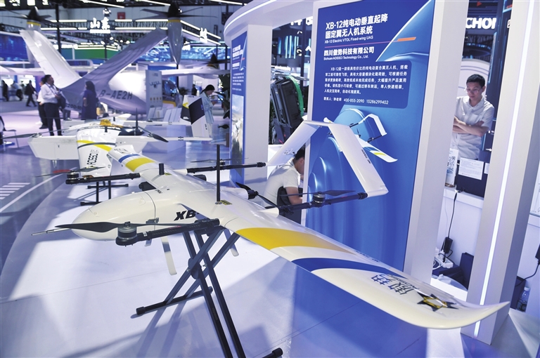 在四川省成都市舉辦的第二屆“一帶一路”科技交流大會(huì)上展出的無人機(jī)(2025年6月11日攝)。新華社記者 劉坤 攝