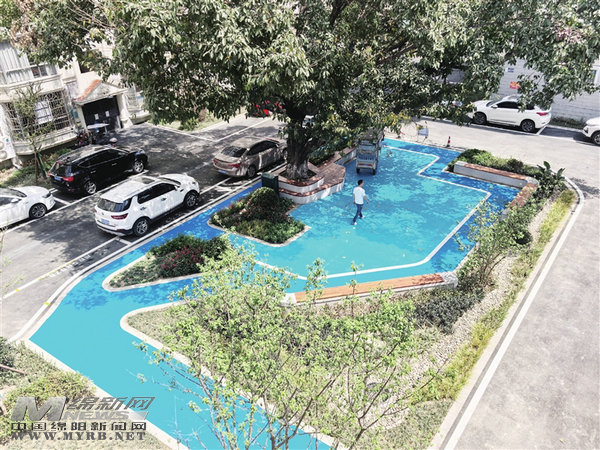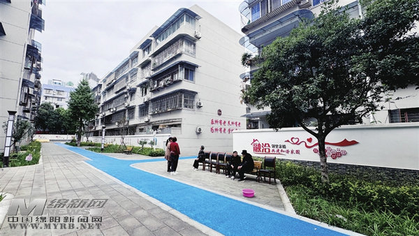 冬日午后,涪城區(qū)荷花中街11號朝陽軍干所小區(qū)暖意融融,幾位老人圍坐在新建長椅上曬太陽。藍(lán)色透水步道串聯(lián)樓棟,生態(tài)草溝隱匿于綠植間,曾經(jīng)老化破損的管網(wǎng)、濕滑積水的路面早已換新顏。