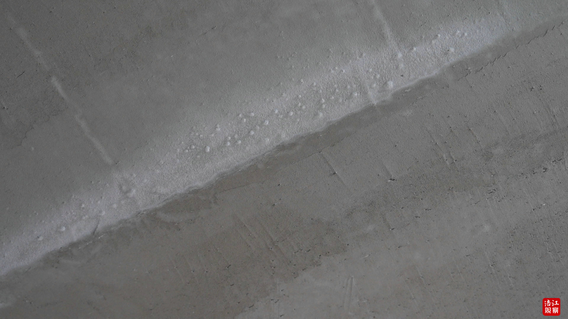 對(duì)于疑似“滲水”痕跡,廖相瑩解釋為施工過程中產(chǎn)生的“反堿”現(xiàn)象,不影響房屋使用安全。工作人員進(jìn)場(chǎng)維護(hù)是為了恢復(fù)美觀度,而非掩飾問題。