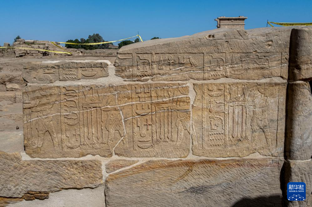 這是1月24日在埃及盧克索省卡爾納克孟圖神廟遺址區(qū)拍攝的刻有浮雕的石塊。新華社記者 辛夢(mèng)晨 攝