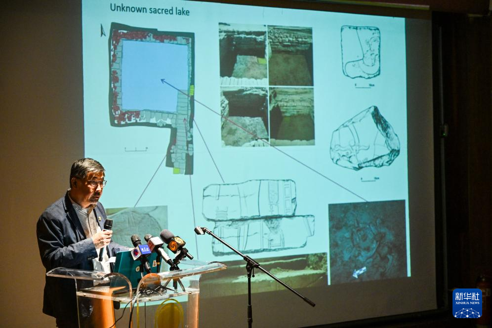 1月24日,中埃盧克索孟圖神廟聯(lián)合考古項(xiàng)目中方總負(fù)責(zé)人賈笑冰研究員介紹考古成果。新華社記者 辛夢(mèng)晨 攝