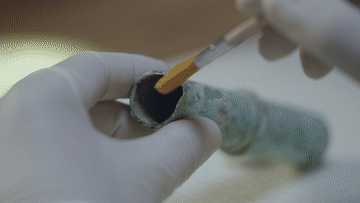 在廣西博物館“匠心·續(xù)華年——文物保護(hù)修復(fù)展”里,參觀者可以透過兩面玻璃,看到兩個(gè)修復(fù)室里的真實(shí)工作場景,文物修復(fù)的“進(jìn)行時(shí)”也成為了“展品”。