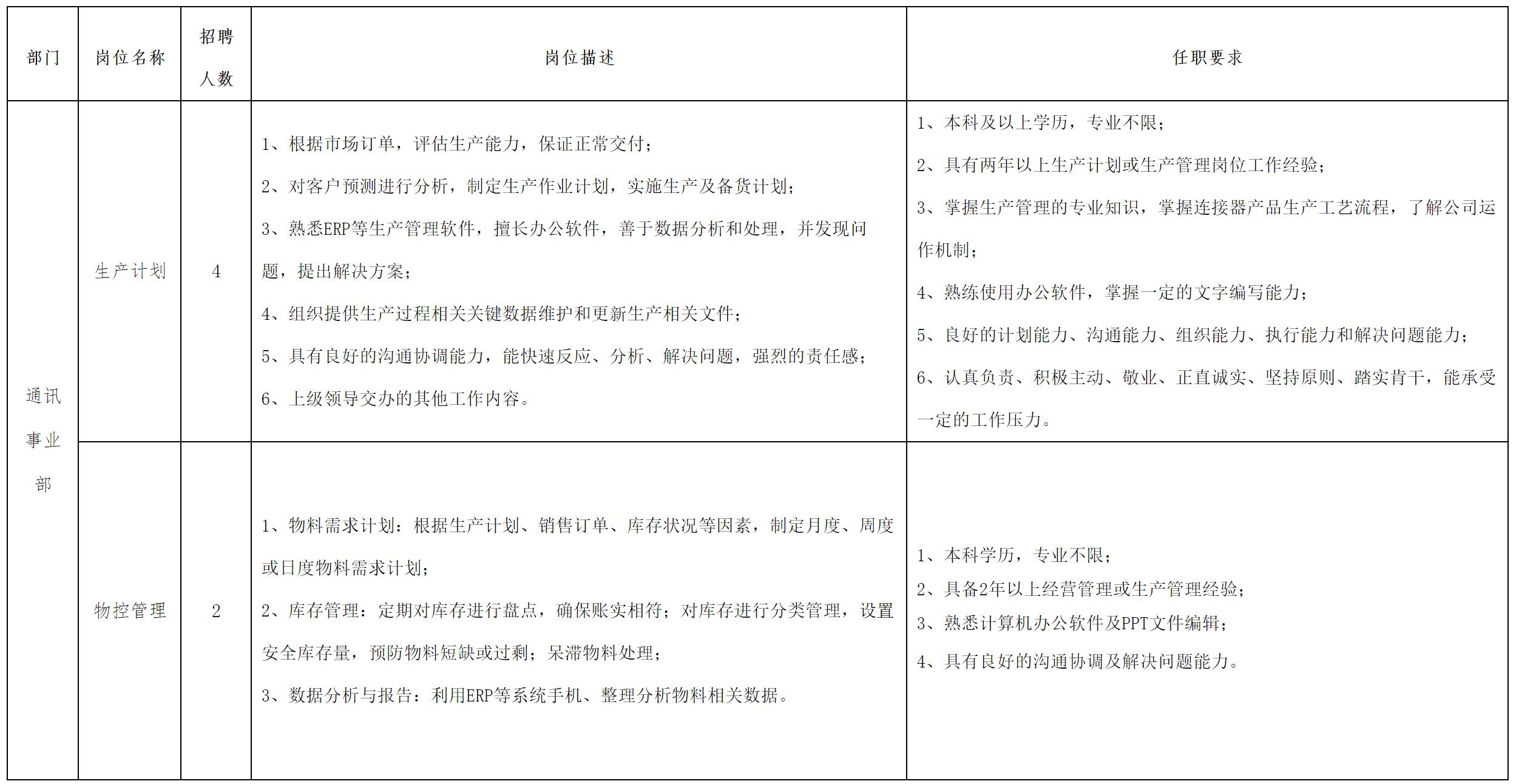 現因公司經營發(fā)展需要,現面向長虹集團內部、外部誠聘生產計劃等崗位人員,具體崗位招聘信息公告如下: