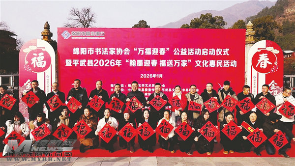 綿陽新聞網(wǎng)訊 近日,綿陽市書法家協(xié)會(huì)“萬福迎春”公益活動(dòng)啟動(dòng)儀式暨平武縣2026年“翰墨迎春 福送萬家”文化惠民活動(dòng),在平武縣城報(bào)恩寺廣場(chǎng)熱鬧啟幕,墨香迎新春,福韻暖民心。