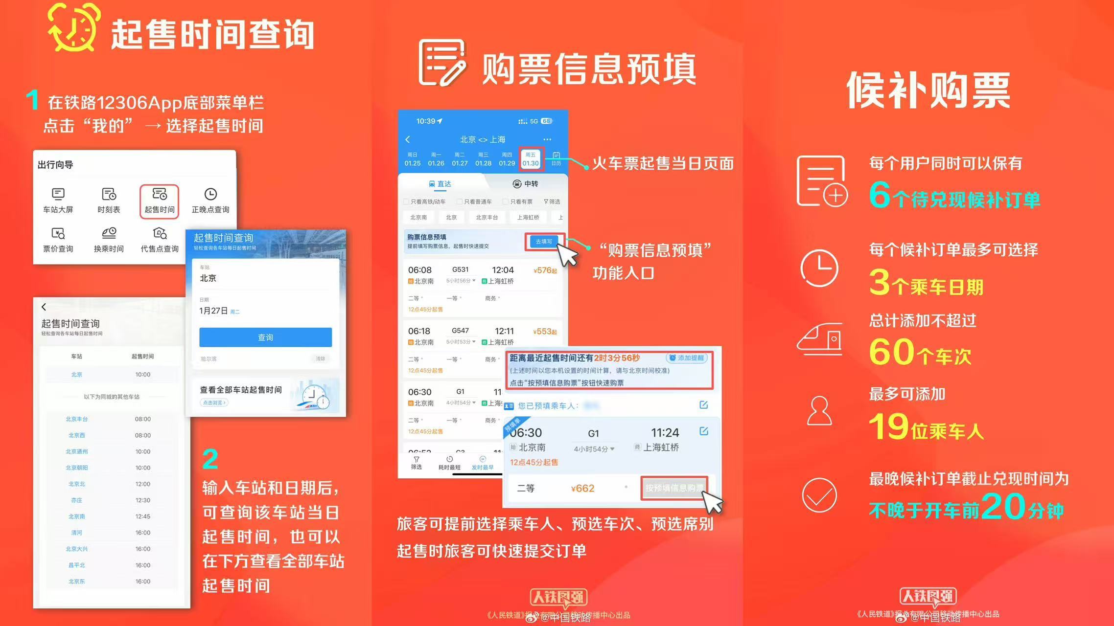 2月1日:開售春節(jié)假期首日(2月15日)火車票