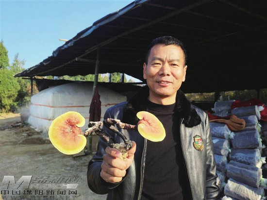 靈云仙芝家庭農(nóng)場(chǎng)負(fù)責(zé)人展示基地種植的靈芝。 記者 陳元松 攝