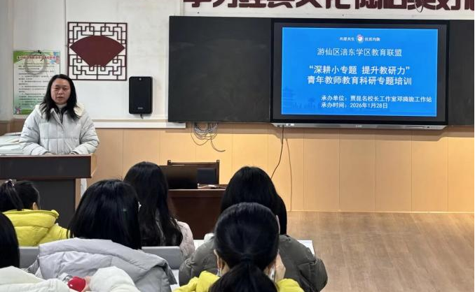 為了助力青年教師專業(yè)成長,夯實教研能力,1月28日,涪東學區(qū)教育聯(lián)盟黨委開展了以“深耕小專題 提升教研力”為主題的青年教師教育科研專題培訓活動。本次活動由涪東學區(qū)教育聯(lián)盟黨委和賈昆名校長工作室主辦,游仙區(qū)建華小學黨支部承辦,來自學區(qū)10所學校的教科室主任及50余名青年教師參與培訓。