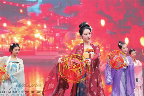 舞臺(tái)區(qū)同樣熱鬧非凡。隨著主持人一聲“‘青睞綿陽·歡喜過年’,我們寬窄巷子里見!”文藝演出正式拉開帷幕。歌舞、民俗表演輪番上陣,將“李白故里、詩意綿陽”的浪漫、“熊貓家園、生態(tài)綿陽”的靈動(dòng)、“煙火綿陽、安逸綿陽”的溫情一一呈現(xiàn)。