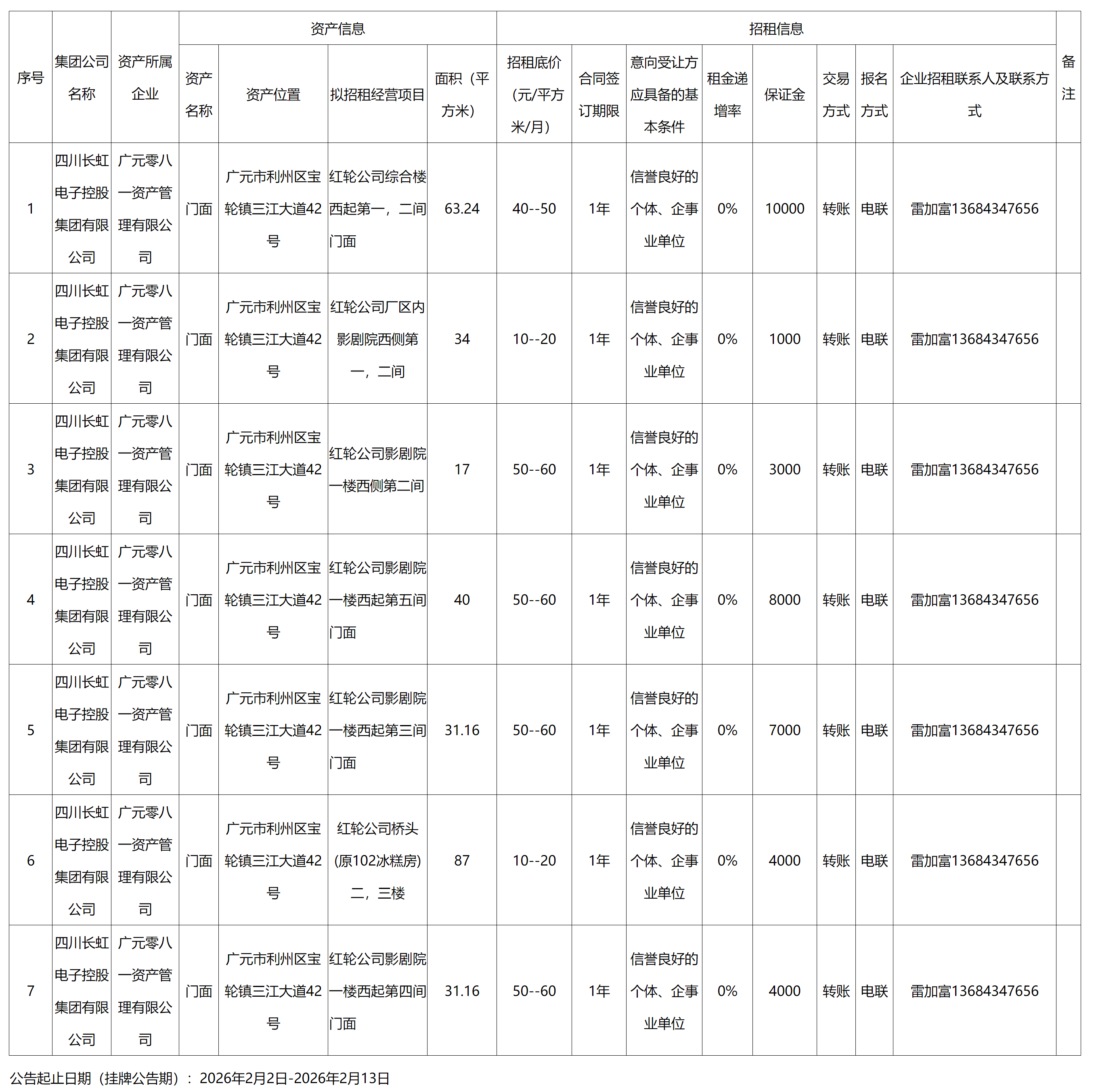廣元零八一資產(chǎn)管理有限公司資產(chǎn)出租公告