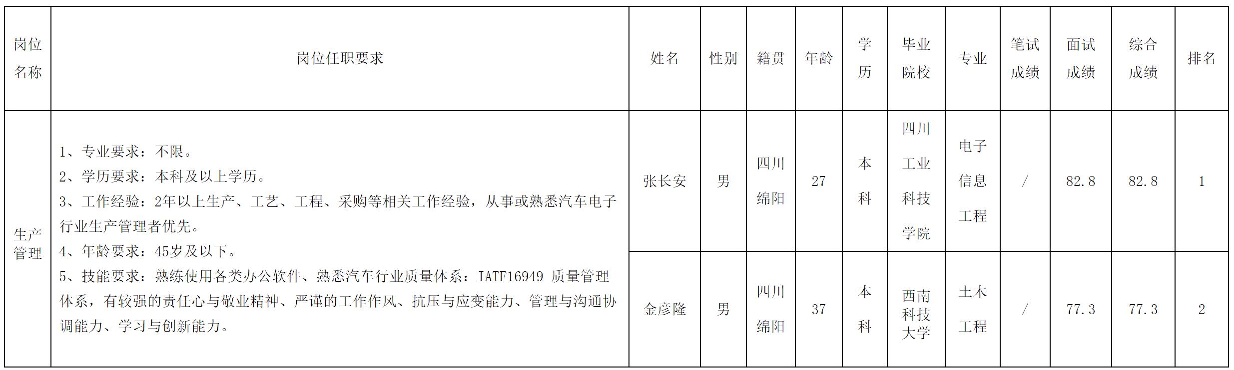 根據(jù)四川愛(ài)創(chuàng)科技有限公司發(fā)布的招聘公告及招聘相關(guān)規(guī)定,經(jīng)面試等程序,現(xiàn)將面試成績(jī)予以公示。