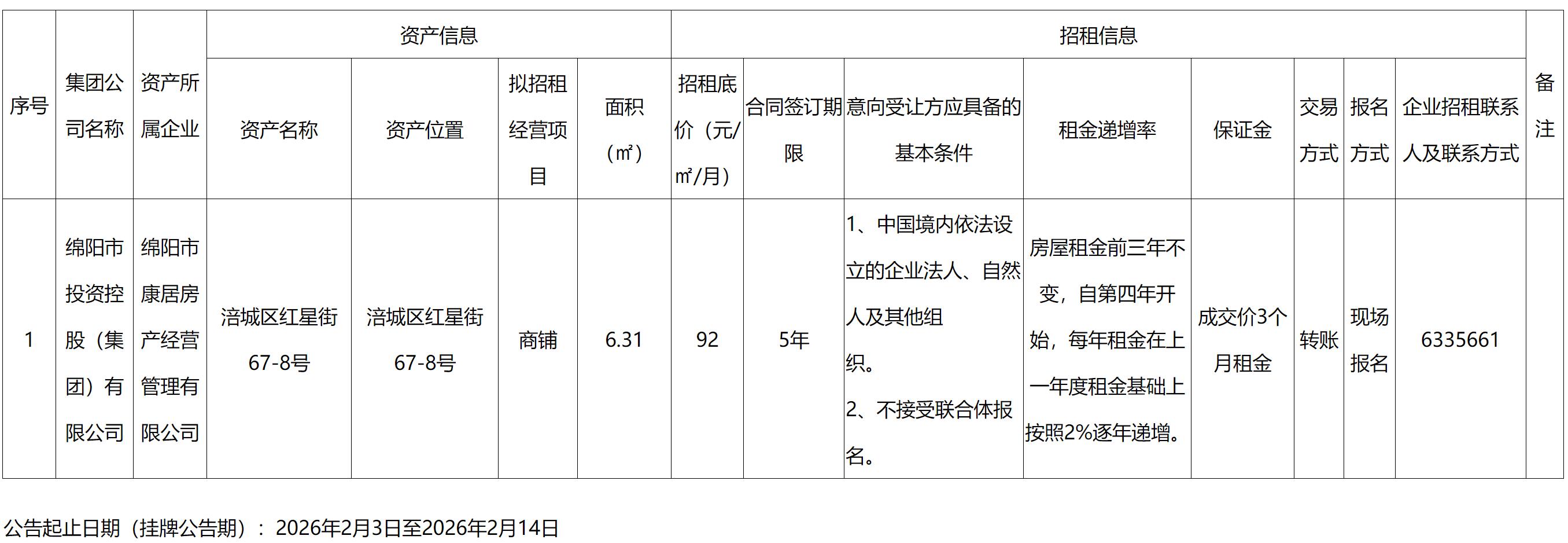 綿陽市康居房產(chǎn)經(jīng)營管理有限公司資產(chǎn)出租公告