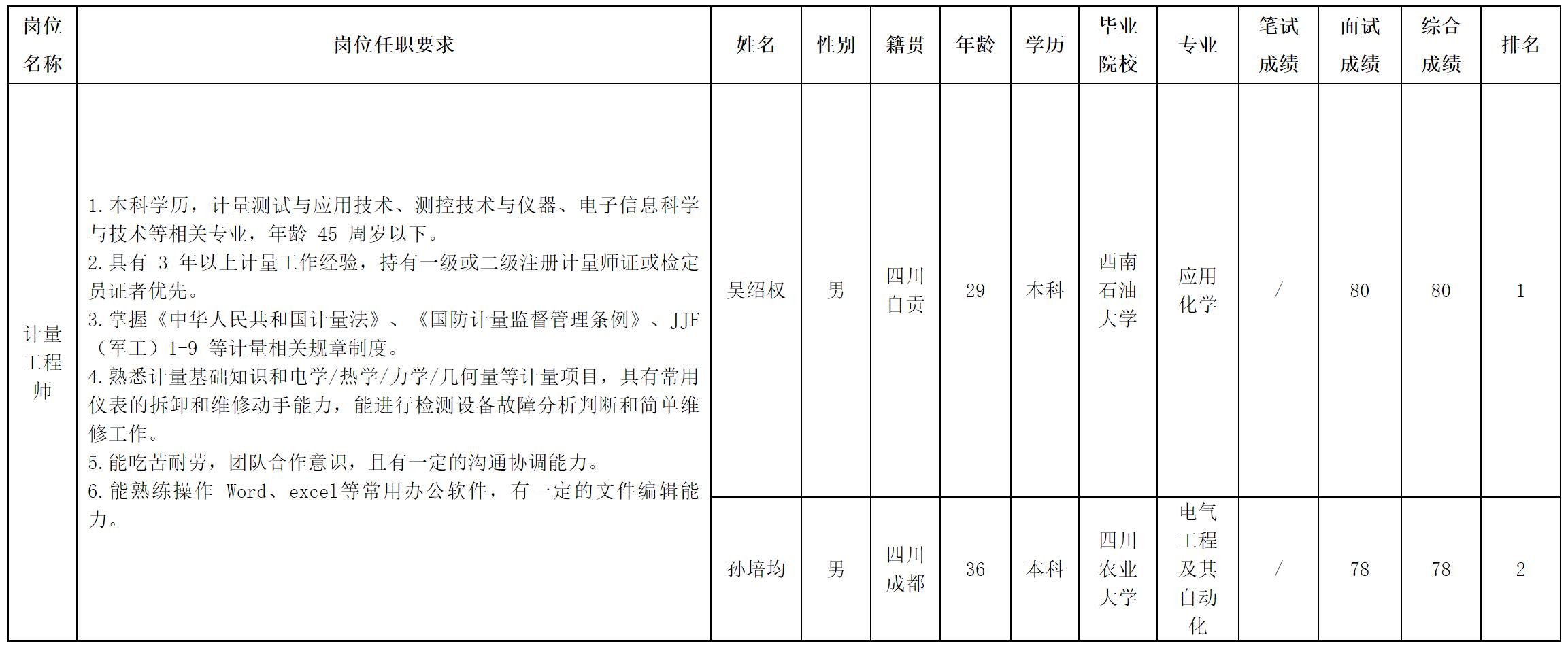 根據(jù)四川華豐科技股份有限公司發(fā)布的招聘公告及招聘相關(guān)規(guī)定,經(jīng)面試等程序,現(xiàn)將測試成績予以公示。